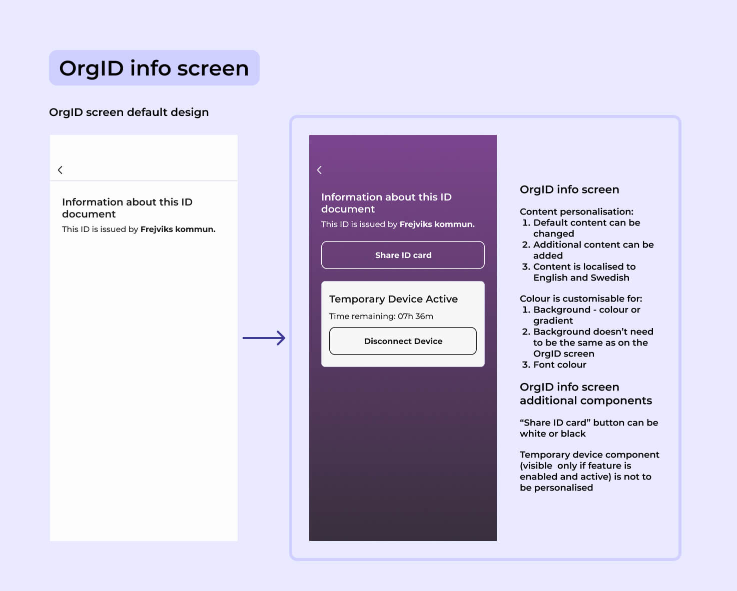 Freja OrgID erbjuder en möjlighet att skapa en unik design i både kortet och ID-skärmen. Detta har blivit mycket populärt och för att möta kundernas önskemål om fler designmöjligheter kommer vi kring månadsskiftet februari/mars 2026 släppa en uppdatering av Freja OrgID:s design-template. I den produktinformation ”Roadmap 2025/2026” som skickades ut under oktober 2025 informerades om att denna uppdatering skulle genomföras under första kvartalet 2026 och nu tar vi nästa steg.